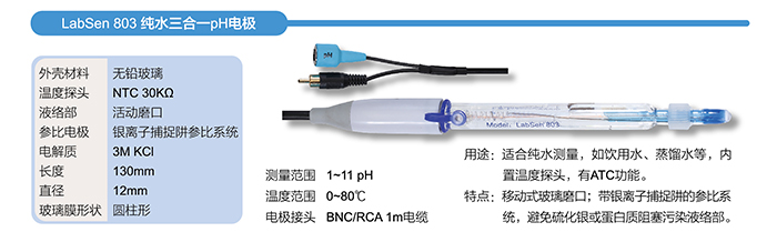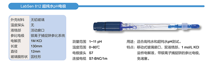 用途: LabSen 802, LabSen 803,適合純水測(cè)試,如飲用水,蒸餾水等; LabSen 512, LabSen 813, 適合超純水測(cè)試