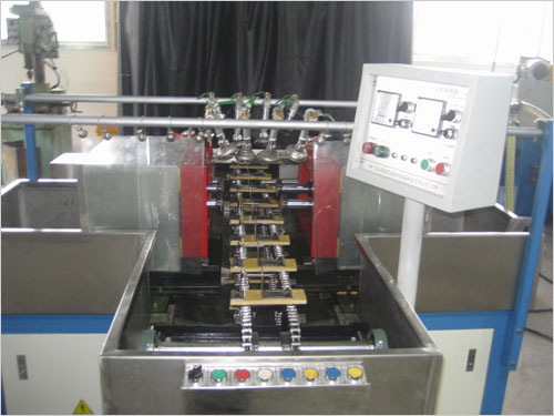 本設(shè)備采用手動、自動兩種運行方式,由可編程控制器(PLC)集中控制。手動時,可進行每個功能的單步獨立操作;自動時,設(shè)備自動執(zhí)行PLC內(nèi)部程序,初始狀態(tài)時,工件經(jīng)人工上料后,按“啟動”按鈕,自動執(zhí)行傳送——噴淋——磁化——傳送——等一系列動作。周向磁化采用直接通電法,縱向磁化采用線圈感應(yīng)法,具有良好的磁化效果。復(fù)合磁化在工件上形成旋轉(zhuǎn)磁場,一次性顯示磁痕,具有較高的工作效率。