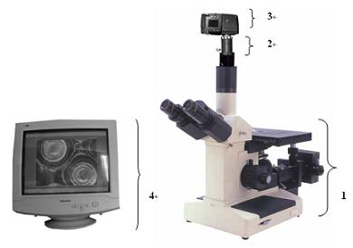 系統(tǒng)組成:1、金相顯微鏡 2、適配鏡 3、數(shù)碼相機(jī)