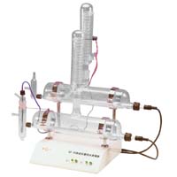 本儀器的一次及二次蒸餾均有繼電器保護(hù)裝置、使用安全可靠。在初次蒸餾時,一次蒸餾器先行開始,蒸餾之水流入二次蒸餾燒瓶中,待水位達(dá)到應(yīng)有高度后,干簧繼電器接通電源。二次蒸餾器開始蒸餾。當(dāng)一次蒸餾水器所蒸餾出的水氣超過一定溫度后,一次蒸餾器上的熱繼電器將切斷電源;而二次蒸餾水器的燒瓶中水位降到一定高度后,干簧繼電器將切斷電源,避免加熱管干燒,從而起到保護(hù)作用。