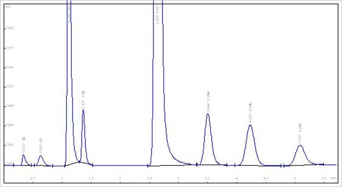 圖四(1) 溶解氣八組份標(biāo)氣色譜圖