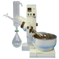 旋轉(zhuǎn)式蒸發(fā)器是采用旋轉(zhuǎn)蒸發(fā)瓶(燒瓶),增大蒸發(fā)面積在減壓下置于水浴中一邊旋轉(zhuǎn),一邊加熱的裝置,使瓶內(nèi)溶液擴(kuò)散蒸發(fā)。是化學(xué)工業(yè),醫(yī)藥工業(yè),高等院校和科研實(shí)驗(yàn)室等單位用于制造及分析實(shí)驗(yàn)賴以濃縮,干燥,回收等較為優(yōu)質(zhì)的常用基本儀器。